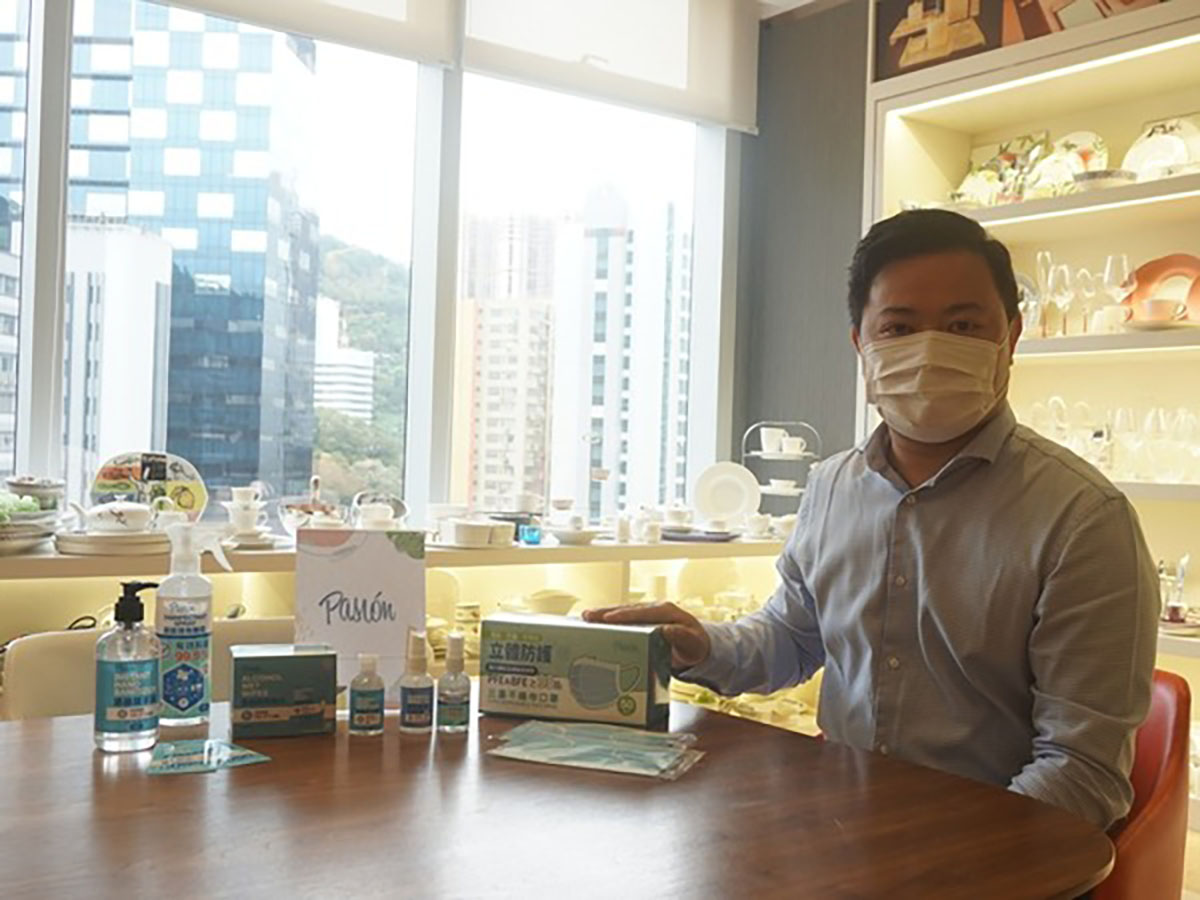 明輝國際控股有限公司本為一間以旅遊用品為核心的本地企業,主要推出酒店用品、航空用品、身體護理用品等產品,Tommy 坦言,新冠肺炎疫情沒錯對他們以旅遊業為主導的公司而言,構成很大業務衝擊,但與此同時,這也是一個機會讓他們改為生產 Pasión 口罩、酒精搓手液等防疫用品,跟香港人同心抗疫。Tommy 解釋:「最初有轉為製作防疫產品的想法,是公司一直以來都有幫其他品牌代工製作搓手液,但數量就比較少的。直到 1 月底、2 月初的農歷新年期間,見到香港對口罩、酒精搓手液等防疫用品需求比較大,不論普通市民,又或者其他準備復工的企業也好,對有關產品的需求殷切,所以就想,既然公司已有生產線,那麼可以為香港製作這些產品,盡能力負社會責任,幫到更多香港人渡過逆境。」
