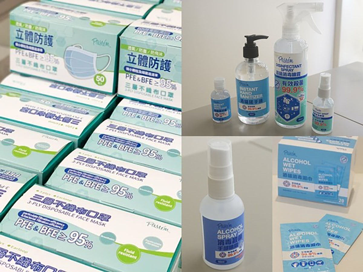 - Pasion 防疫產品包括三層不織布口罩、酒精搓手液、全方位潔淨殺菌消毒噴霧、殺菌消毒手部噴霧、酒精消毒濕巾