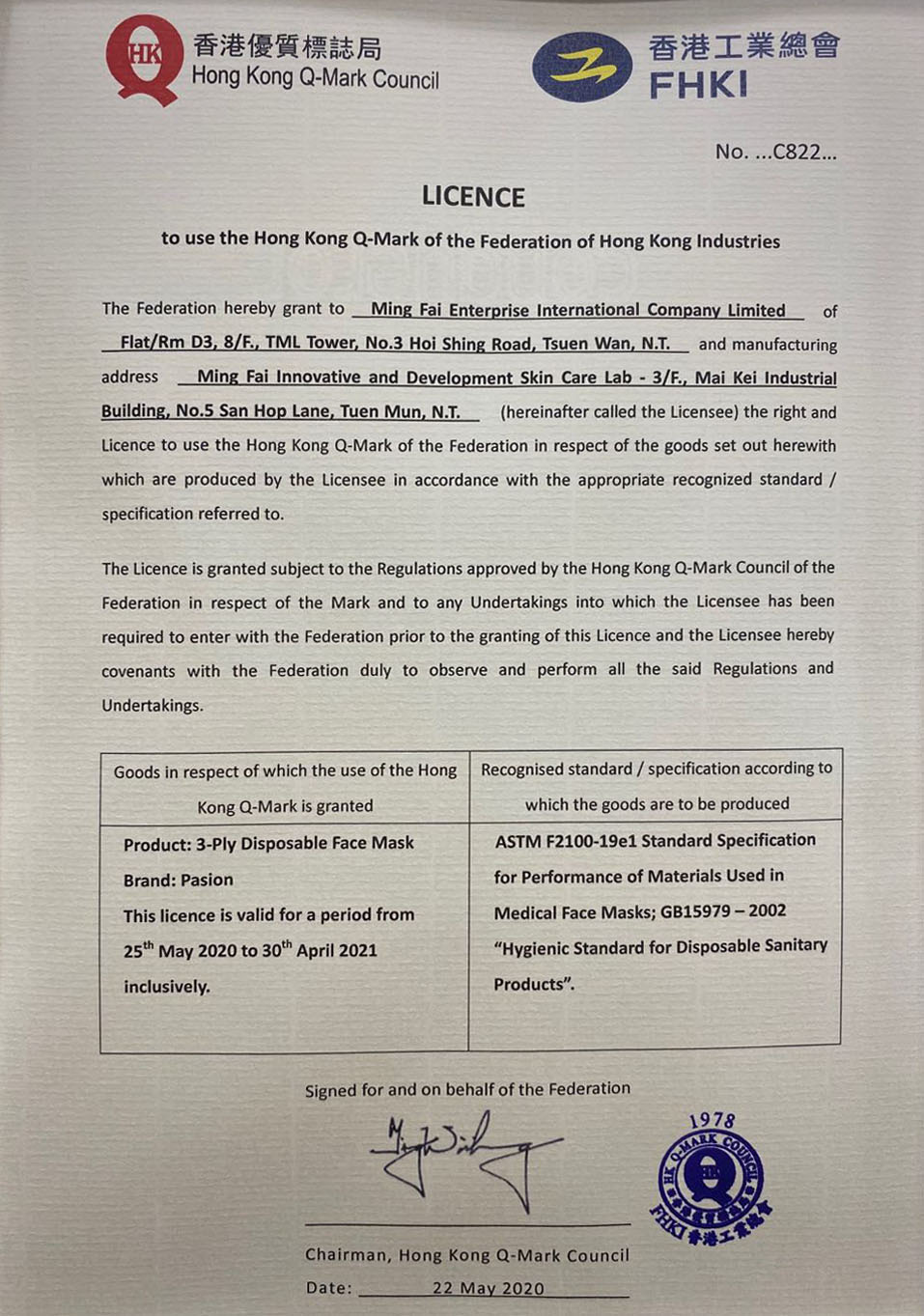 Pasión 是首批獲得Q嘜認證的港產口罩!